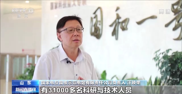 国家电投国核示范电站有限责任公司负责人 汪映荣:全国有600多家科研院所、企业机构参与到了“国和一号”的研制和制造过程,有31000多名科研与技术人员参与到了“国和一号”的研发工作,形成了7600多项知识产权。