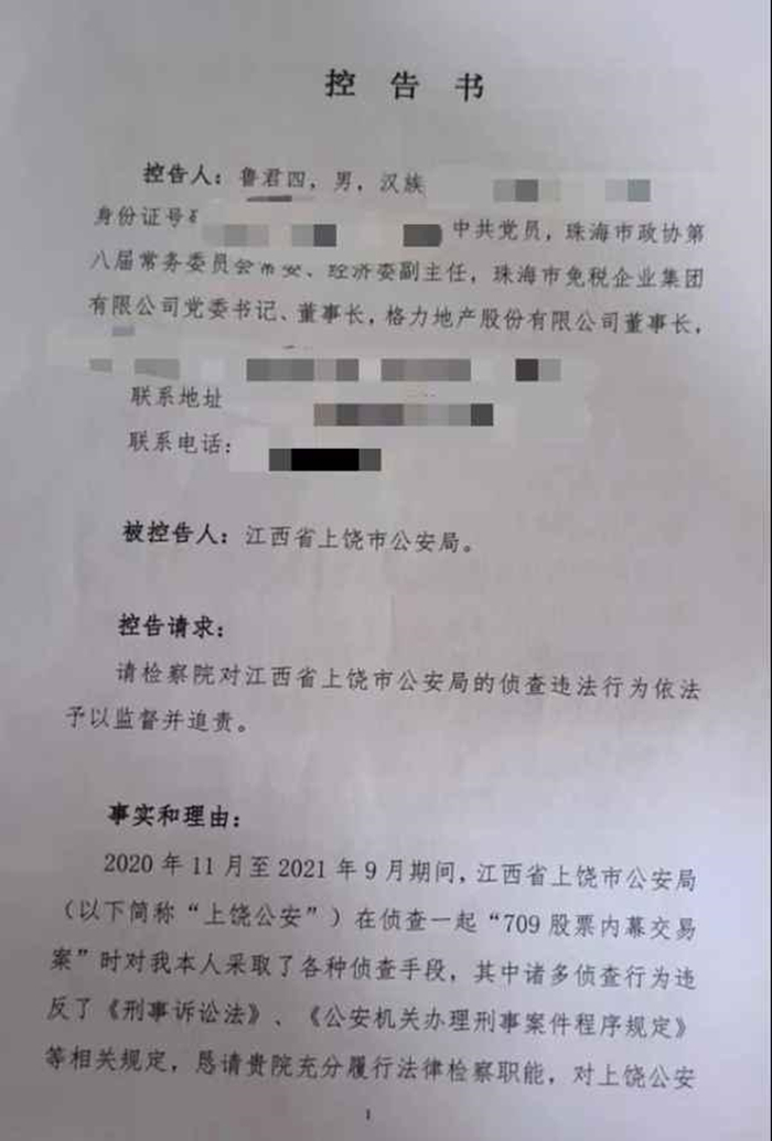 1.地产与星空《格力地产原董事长被采取刑事强制措施另有案外案?鲁君四发出控告书》