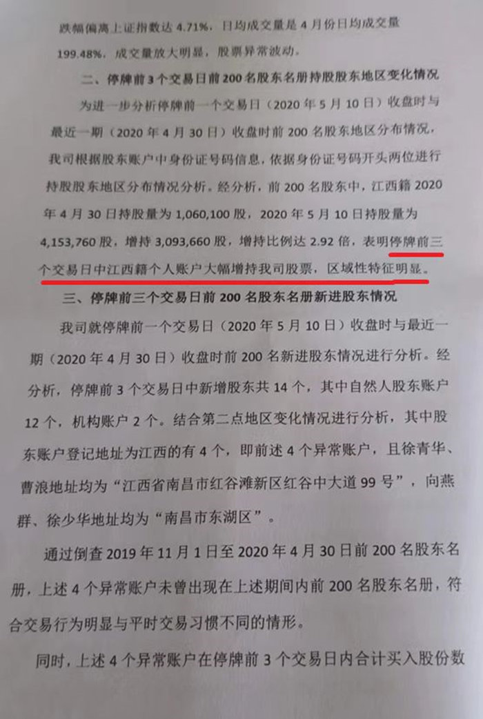 同时,《报告》根据中证登提供的前200名股东名册,对格力地产股票停牌前的账户异动情况进行了分析。