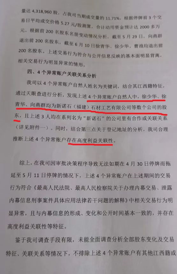《报告》称,上述四个账户的交易行为与公开信息反映的基本面明显背离,相关交易行为明显异常。