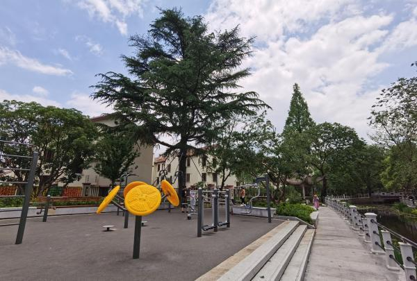 芳草园和清溪园也是闵行区近年新建的两座口袋公园,一度因为部分区域“踩”在了莘庄镇政府、闵行区绿化市容局等单位的围墙内,在规划设计上进退两难。