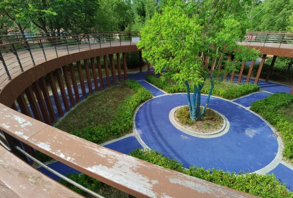 站在淀浦河畔两层楼高的“绿岛之环”上,王盛先感慨万千:“以前小区背后的绿地和河岸,只能远观而不能亲近,浓密的乔木挡住了四楼以下居民的阳光,周边想找个放风筝的地方都难!”