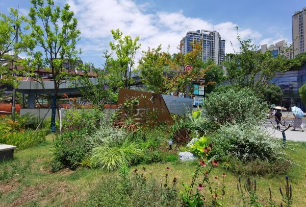去年初夏开放的百草园街心花园,充分听取了四平路沿线居民希望口袋公园更有艺术文化气息的建议。
