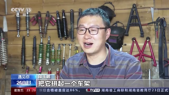 顾玉鹏:第一个是机械知识,第二个电子知识,还要会电焊,然后还要懂一些驱动的原理匹配,我这个学历并不高,我是高中毕业,一开始做车没有一个地方是我懂的,我必须一个地方一个地方测试,一台车光零件就是几十种上百种,每一个都要测试,一台车做下来,反反复复拆散再重新组装可能要三四遍、四五遍这个样子。