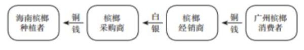 海南槟榔种植者出售槟榔获得铜钱,那么在铜钱日渐贬值的情况下,他获得的价值是日益减少的。槟榔采购商向槟榔经销商大量出售槟榔,以白银为结算单位,因为白银价值有所提高,所以他获得的白银数量也是减少的,且由于广州是对外贸易口岸、白银的流出地,因此白银价值比其他地方更高,槟榔采购商会选择在广州兑换铜钱,这样白银就会进一步向广州集中。广州的槟榔经销商向一般消费者出售槟榔,是以铜钱为交易货币的,铜钱价值下降,所以广州的槟榔消费者需要付出更多的铜钱购买槟榔。由于槟榔经销商需要用日益升值的白银购入槟榔,获得的却是贬值的铜钱,因此其利益受到很大的损害,于是经销商需要大幅度提高槟榔的零售价格以保证利润,对抗铜钱兑换白银之间日益上升的差价。