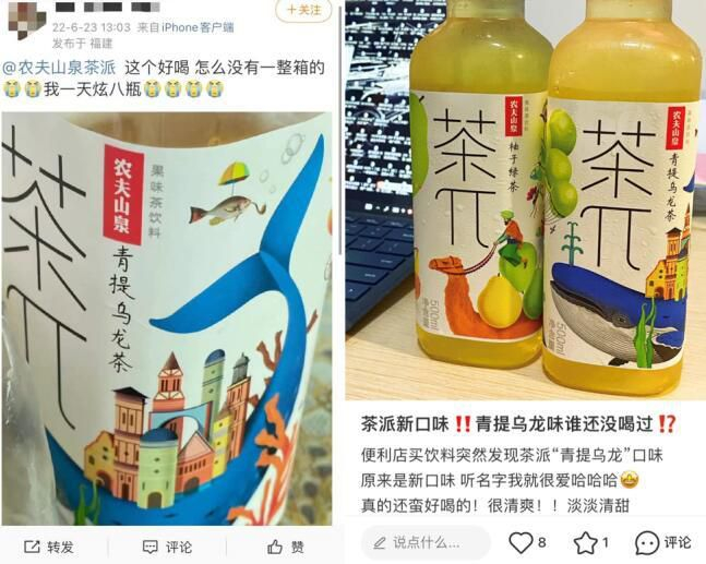 (微博和小红书上消费者对茶π青提乌龙茶口味好评如潮)