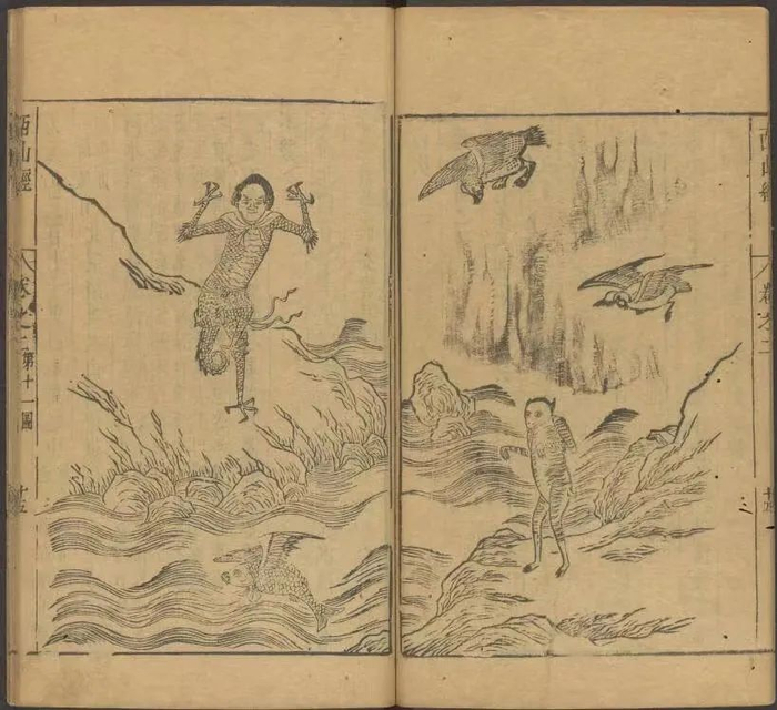 单是从《山海经》的篇目,我们就能窥到上古先民对世界的原始认知。全书共十八卷,其中《山经》五卷(南、西、北、东、中经各一卷),《海外经》四卷(南、西、北、东经各一卷),《海内经》四卷(南、西、北、东经各一卷),《大荒经》四卷(东、南、西、北经各一卷),以及《海内经》一卷。