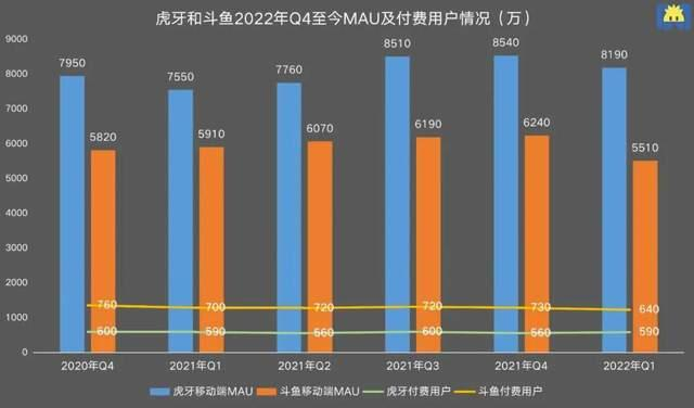 在付费用户规模方面,快手、虎牙、斗鱼、陌陌、映客、YY等头部直播平台,均从2021年下半年开始转入下滑趋势。比如虎牙和斗鱼,仅在2021年Q4,就分别流失了数十万的付费用户。
