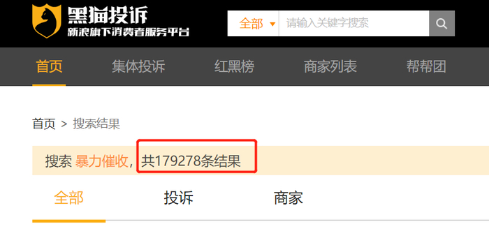 市界查询了黑猫投诉平台,搜索“暴力催收”后发现,共有17.93万个词条。投诉者发布了自己与催收员的电话录音和聊天截图,部分对话内容的言辞很激烈。