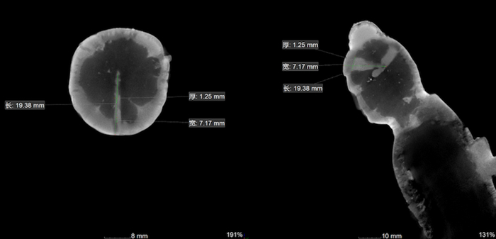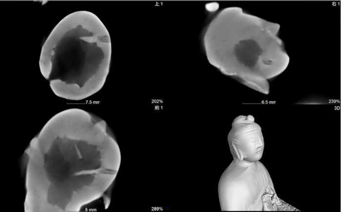 但这3件CT的检测结果与前3件又有不同之处——即佛像头部均为实心。