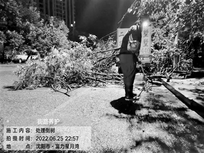 6月25日20时许,一场挟着疾风、冰雹的暴雨突降沈城,最大瞬时风力13级。突如其来的狂风骤雨,导致部分街路积水,行道树倒伏,给出行带来隐患。沈河区、和平区、铁西区、大东区、浑南区、沈北新区等均出动绿化应急队伍,迅速处理倒伏树木。