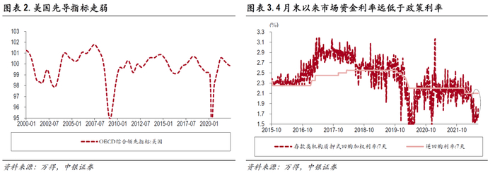短期“美下中上”的基本面格局是独立行情的重要支撑。一方面,复工复产带来的国内需求边际修复,修复斜率基本符合或略超市场预期,5月经济数据及地产销售高频数据均出现了显著回温,市场对于内需企稳信心增强。与此同时,海外衰退预期不断升温,消费、生产、住房投资等同步指标都出现明显走弱迹象,先导指标OECD领先指标也自4月高点持续下行。“美下中上”的短期基本面格局成为近期国内风险资产强势、北上资金大幅净流入的重要支撑。而这一基本面格局是下半年A股分子端的重要支撑。