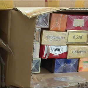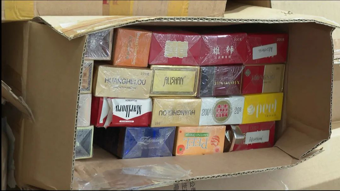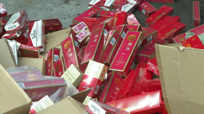一辆满载假烟、走私烟的卡车