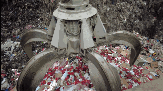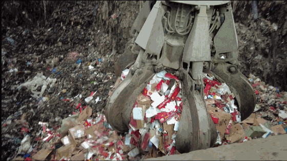 用垃圾抓斗起重机将这些假烟、走私烟吊运至垃圾投料口内