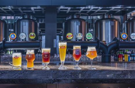 除1903精酿工坊,青岛啤酒·时光海岸精酿啤酒花园还汇聚度假酒店、威士忌俱乐部、啤酒SPA、创意烘焙、婚恋服务等时尚业态,将精酿啤酒生产、品鉴、美食、娱乐、演艺、互动、体验、NPC、自助打酒、旅游、婚庆、时尚IP等融为一体,让沉浸更“深一度”。