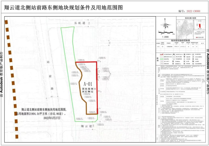 (一)规划情况:翔云道北侧、站前路东侧地块,面积32.86亩,规划用地性质为二类居住用地,容积率1.0<R≤1.5,建筑密度≤30%,建筑限高≤30米,绿地率≥35%。