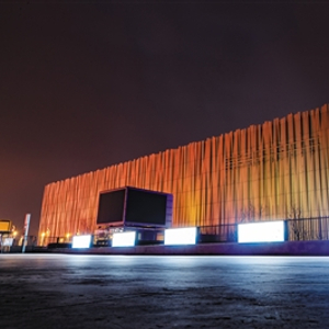 为保障北京冬奥会冰球项目训练需求,在五棵松体育中心东南角修建了拥有两片冰场的华熙LIVE·冰上中心。冰上中心外立面采用格栅幕墙体系,斜向格栅呈45度交叉,通过几何图形组成雪花的图案,夜晚在光影变化中像有无数片雪花飘落,因而又名“冰菱花”。
