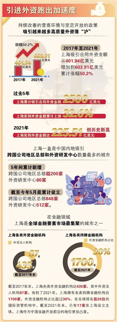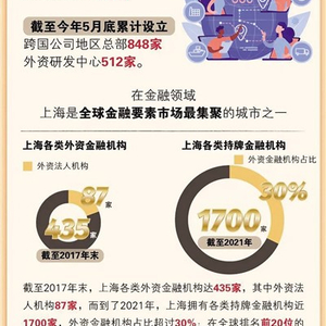 以开放促改革、以改革促发展,上海持续打造市场化、法治化、国际化的营商环境,提高行政效率,简化业务流程,为外资提供便利,截至今年5月底,上海市累计设立跨国公司地区总部848家和外资研发中心512家,成为全球最富吸引力的外商投资目的地之一。