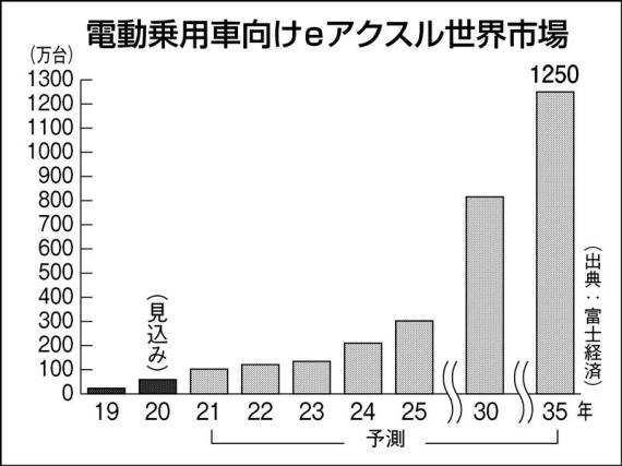 日本调查公司富士経済预测EV用驱动电机系统“E-Axel”2035年时市场规模是2019年的54・3倍,将达到1250万台。