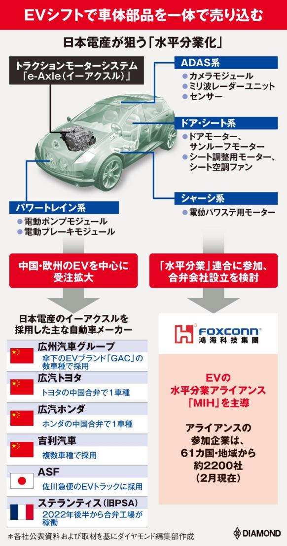(日本媒体的报道显示,日本电产的驱动电机E-Alex已经销售给了广汽、广汽丰田、广汽本田、吉利、ASF、PSA等大客户)