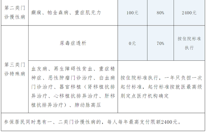 5、城乡居民基本医疗保险门诊慢性病病种、起付标准及基金支付比例?