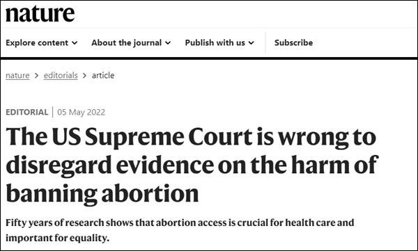 《自然》杂志5月5日发文,称美国最高法院无视关于禁止堕胎危害的证据,是个错误。