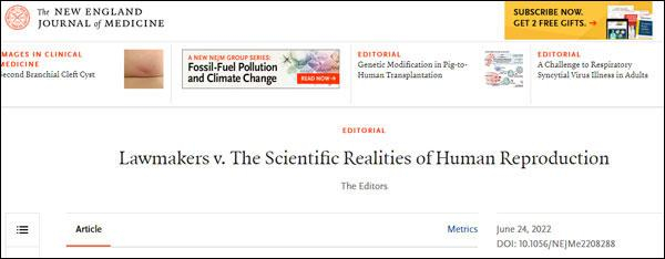 6月24日,在判决书正式发布后,《新英格兰医学杂志》(NEJM)在其首页发文,称此举是美国政府对于个人生活和医疗保障权利干涉的惊人倒退。