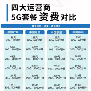 比如,以北京地区为例,中国移动5G套餐共有八档,从99元至599元不等。其中99元包含20G国内流量,100分钟国内通话,129元包含30G国内流量,200分钟国内通话。对比之下,中国广电价格略低。