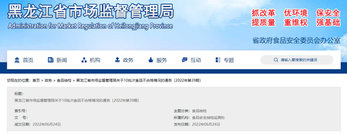中国质量新闻网讯 据黑龙江省市场监督管理局网站2022年6月24日发布的通告(2022年第39期),近期,黑龙江省市场监督管理局组织食品安全监督抽检,抽取14大类食品628批次样品。其中,抽检水产制品39批次,全部合格。