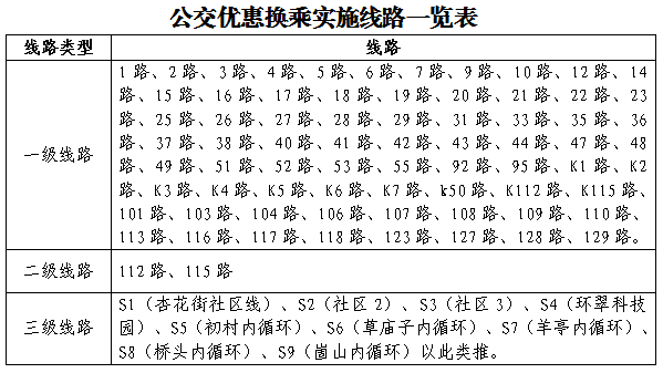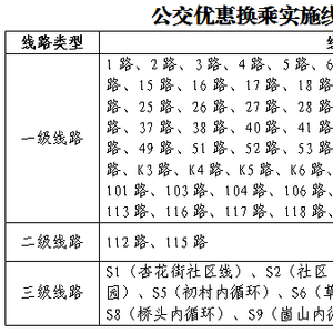 围绕争创公交都市,倡导绿色出行,威海公交集团结合公交线网优化的实际,计划6月30日起,在局部区域公交线路实施优惠换乘试点。公交线路将分为一级线路、二级线路和三级线路,不同级线路可以实现优惠换乘,同级线路不可以换乘,优惠换乘周期为40分钟。后续,公交集团将结合公交线网优化,适时增加优惠换乘线路,敬请期待。