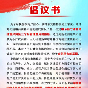 由于承租的商铺非国有房屋,新七浦服装市场的经营户无法直接享受租金减免。为了尽快提振信心,及时恢复销售流通正常化,6月22日,新七浦服装市场管理方发布倡议书,决定给予全体经营户减免三个月管理费用的措施。