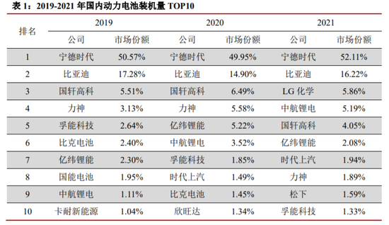 在新能源时代的大背景下,全球锂电市场在2018年后进入需求高速发展时期,动力电池行业的前景广阔。国内动力电池龙头竞争格局清晰,其中宁德时代以一己之力扛起了国内动力电池的半边天,一直保持龙头地位。