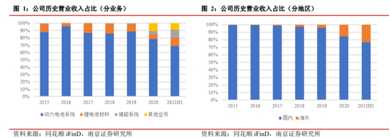 另一方面,受益于海外新能源车市场逐渐放量和海外客户拓展,宁德时代海外收入占比持续提升,从 2015年的 0.6%增长到 2021 年上半年的 23.14%。