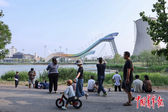 6月的北京,走进首钢园,滑板少女在首钢滑雪大跳台下疾驰而过,初学轮滑的小朋友在冷却塔间的马路上徐徐前行,年轻人登上“冬奥之环”顶端拍照“打卡”,大跳台旁的群明湖对岸,男女老少以各自的方式运动或休闲。北京冬奥会结束后,作为比赛场地之一的首钢园,热闹的氛围始终没有散去。