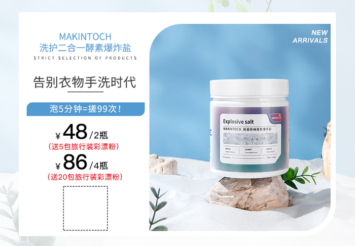 你可别小瞧这款爆炸盐,它除了能洗衣服、床单,还能祛除厨房油污、水池黄垢、水垢、马桶黄渍等。