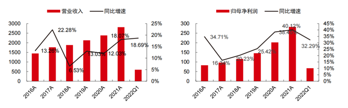 国内52 家核心军工企业,2021 年度总计实现营业收入 2886.94 亿元,同比增长 18.08%;实现归母净利290.71 亿元,同比增长40.17%,增速创近五年新高。