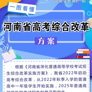 经教育部同意,河南省政府今天正式印发《河南省深化普通高等学校考试招生综合改革实施方案》,确定我省2022年启动高考综合改革,也就是从今年(2022年)秋季入学的普通高中一年级学生开始。