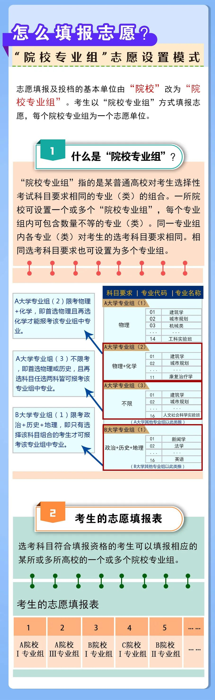 从2022年秋季入学的普通高中一年级学生开始,实行基于统一高考和高中学业水平考试成绩、参考综合素质评价的普通高等学校考试招生模式;进一步完善高职院校分类考试招生制度改革。到2025年,初步形成分类考试、综合评价、多元录取的考试招生模式,进一步健全促进公平、科学选才、监督有力的考试招生体制机制,构建顺应时代要求、符合教育规律和我省省情的普通高等学校考试招生制度。