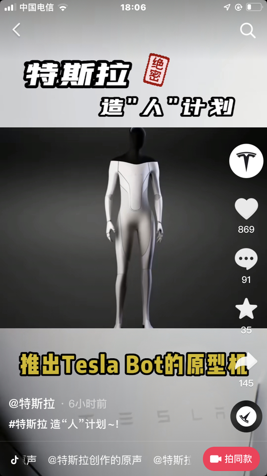 消息面上,特斯拉(中国)在其官方抖音号上发布一条时长31秒的视频。视频标题为《特斯拉“绝密”造人计划》,对其人形机器人产品进行了介绍,此前曾有消息称特斯拉人形机器人9月将正式发布。有分析认为,如果将视野拓宽至广泛的应用、零部件、软件、算法算力、能源,那么拥有“人工智能”的机器,将撑起一个百万亿级的新兴产业。