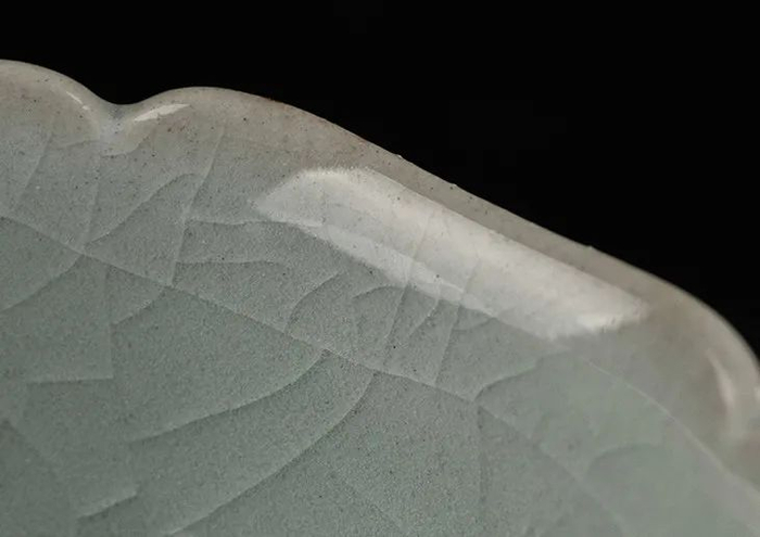 这只哥窑花口盏,选用的便是这个经典款式,相比传世哥窑,工序上少了染色一步,整体的视觉冲击没有那么强,更为素美、清雅。
