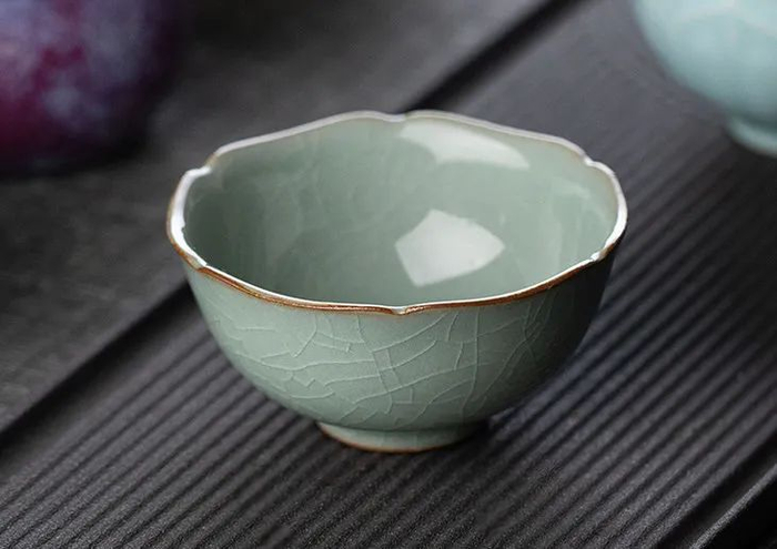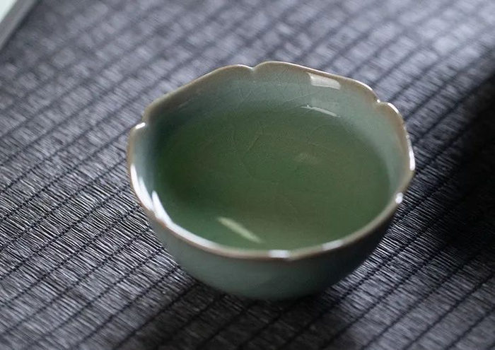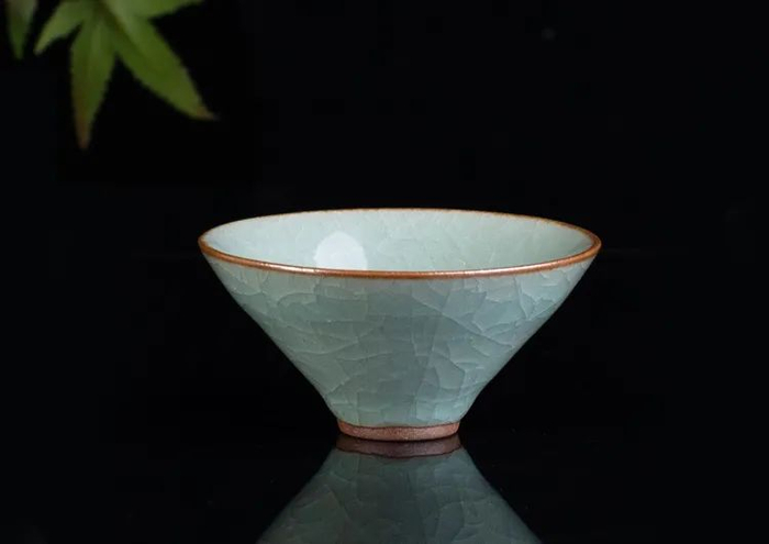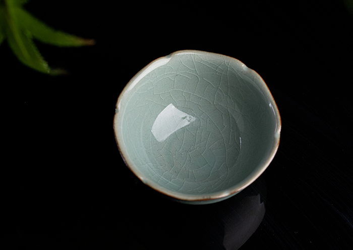 哥窑花口盏薄坯厚釉,整体轻盈得体、手感舒适。
