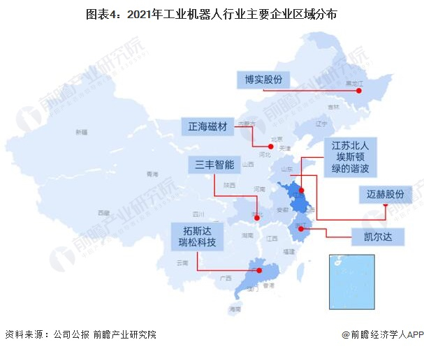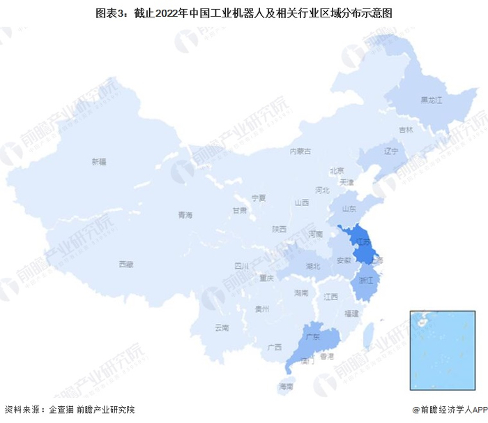 工业机器人产业链区域热力地图:东部沿海地区拥有聚集优势