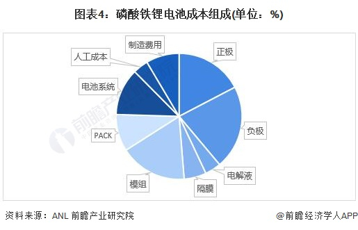 磷酸铁锂电池成本组成中,动力电池PACK工艺的成本占比达到9.50%。