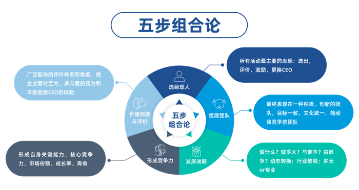 在企业管理的五步组合论中,第一步选经理人是最重要的,选好了经理人,“五步”才能连起来不断循环。