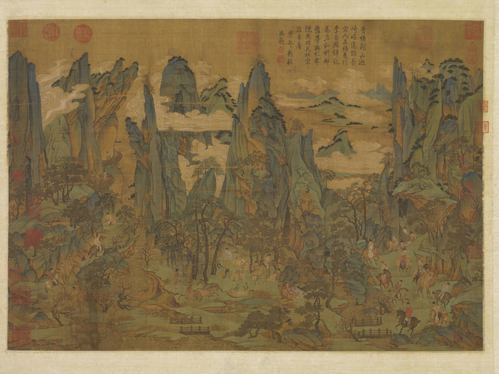 但是卢鸿《草堂十志》有若干摹本存世,台北故宫博物院藏本显得最为古拙。卢鸿是一位道家隐士,在洛阳附近的嵩山隐居。宫廷曾授他以谏议大夫之职,但他固辞不受。唐玄宗不仅没有惩罚他,反而赐给他很多礼物,包括嵩山上的一座草堂,让他在那里办塾课徒和安度晚年。