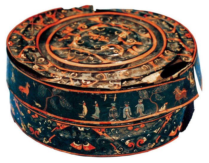 曾侯乙墓出土的彩绘鸳鸯形漆盒另一面局部画面
