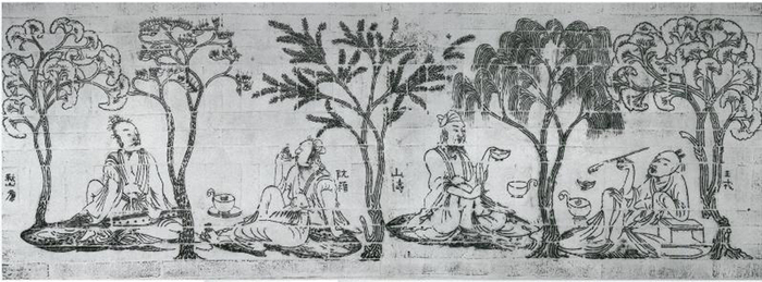 比如安徽马鞍山朱然墓发现的彩绘漆器、苏州虎丘黑松林三国墓葬中的石屏风,后者表现的图景与传为顾恺之所撰的《画云台山记》中的描写的风景与叙事内容暗合;还有在南京地区发现的多件著名的“竹林七贤与荣启期”砖画,这一题材的文物遗存被巫鸿认为“最接近当时名家作品”,竹林七贤代表着一种旷达雅致的审美风尚,它取代了汉代风行的飞天、神兽、西王母、孝子贤孙等,用来表现黄泉下的理想世界。