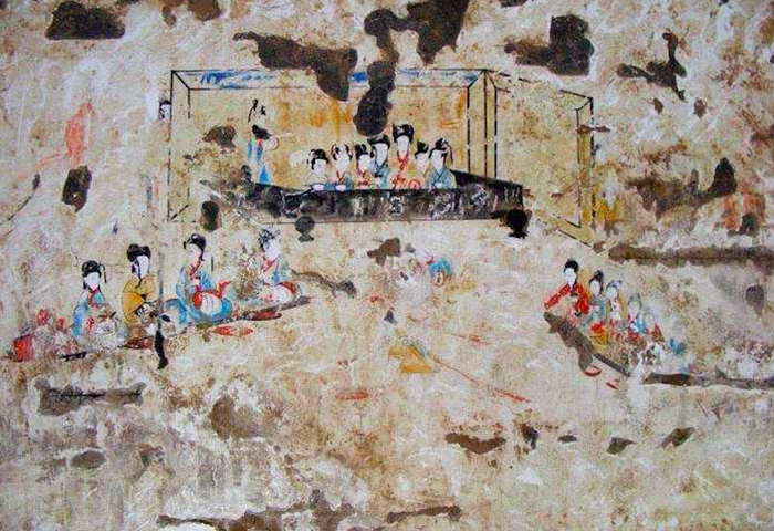 新莽至东汉早期 陕西定边县郝滩1号墓壁画 拜谒西王母乐舞图(局部)