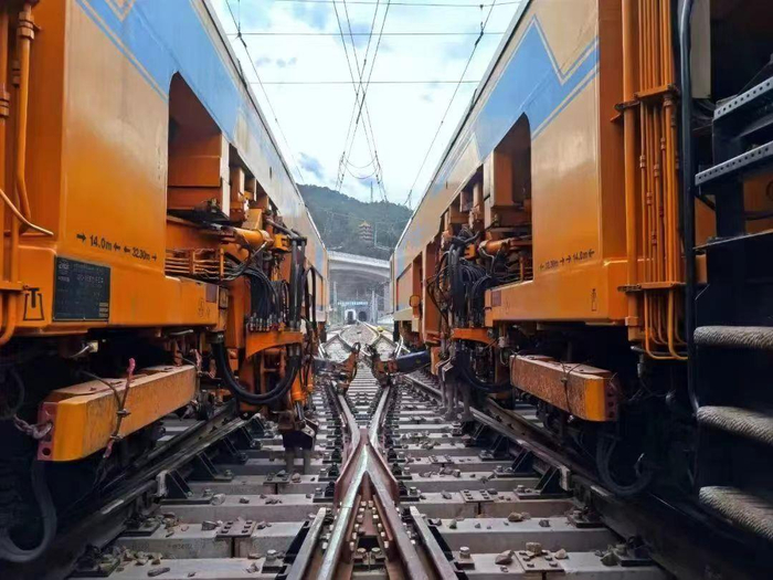 在大瑞铁路大保段接触网建设过程中,施工单位采用恒张力放线作业车、长大隧道电力电缆敷设机械装置、接触网腕臂数字化全自动腕臂预配平台等高新设备,有效提升施工工艺质量。同时,在全线设置了标准化工厂,通过现场的精准测量、技术统一的软件计算、工厂化的统一预配,将全线的接触网腕臂零配件、牵引变电所预配件等进行统一预配生产,确保工艺精细统一。