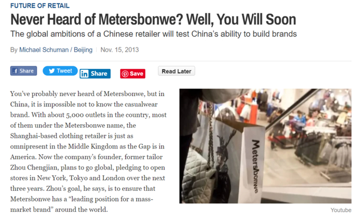 而美特斯·邦威,则像一个于千禧年成名的摇滚巨星,少年时代无限风光,而今为了生活而忙于各处跑通告,虽然在舞台上唱的还是当年的成名曲,但却再也唱不出那个20来岁充满叛逆的自己。